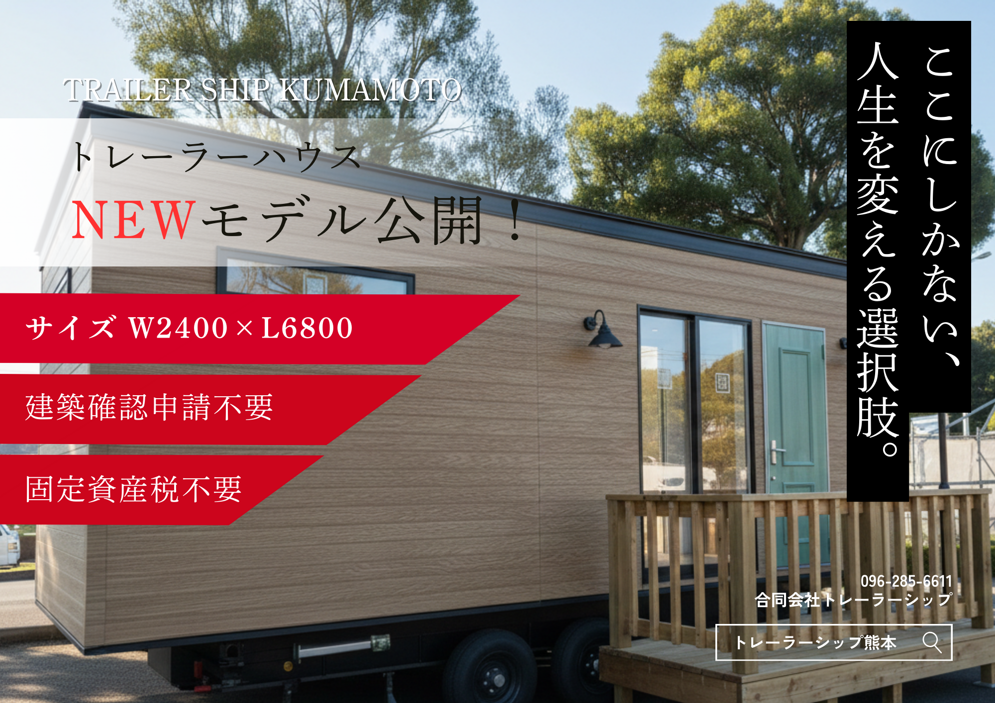熊本で店舗や事務所、セカンドハウスや別荘など様々な用途にトレーラーハウスが、注目されているのには理由があります。トレーラーハウスは「車両扱い」であり、法的には「不動産」ではなく「動産」と解釈され、コスト面や建築面で、様々なメリットが生じます。