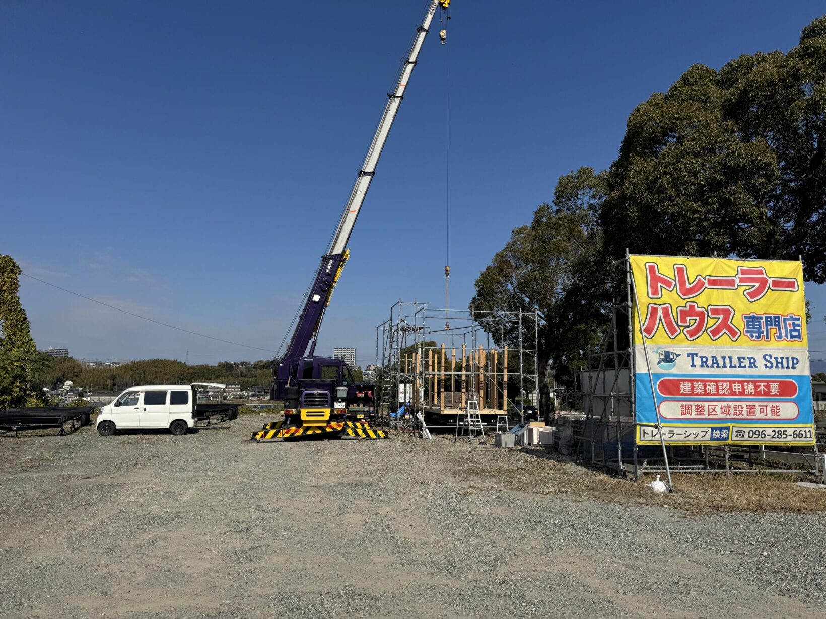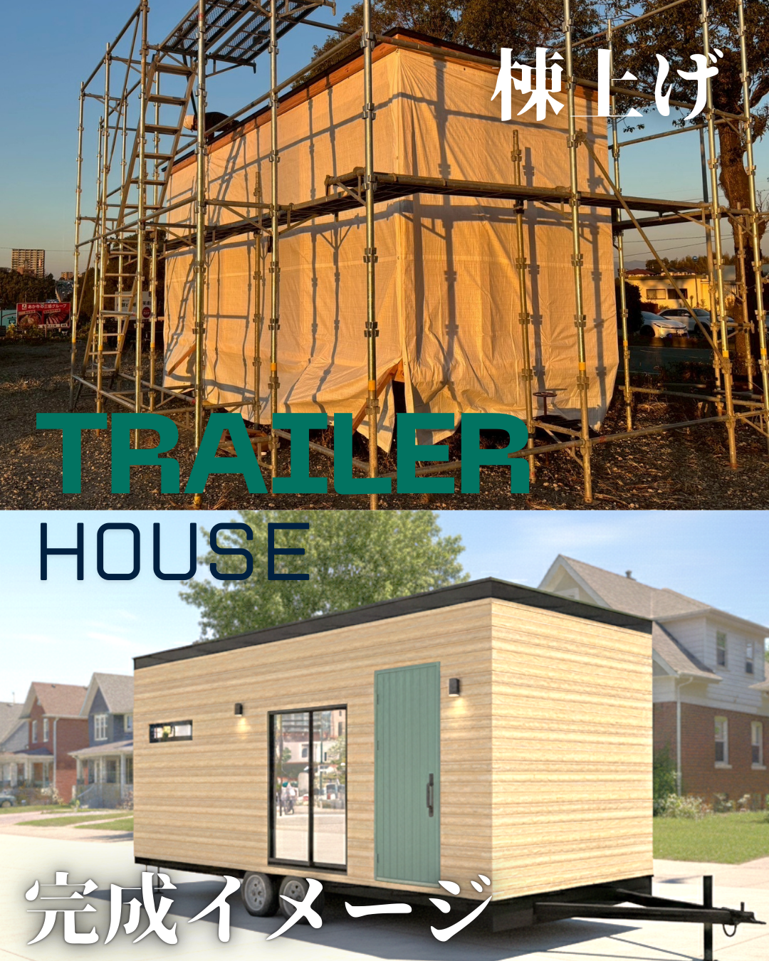 こんにちは。トレーラーシップの松下です。12月6日にトレーラーハウスを棟上げしました⛑️