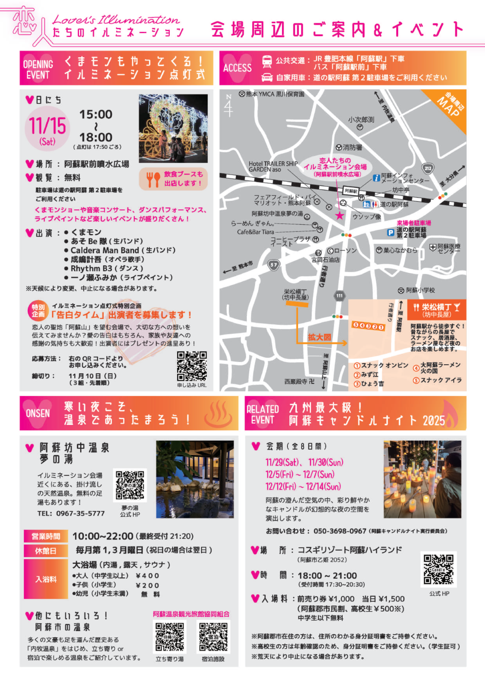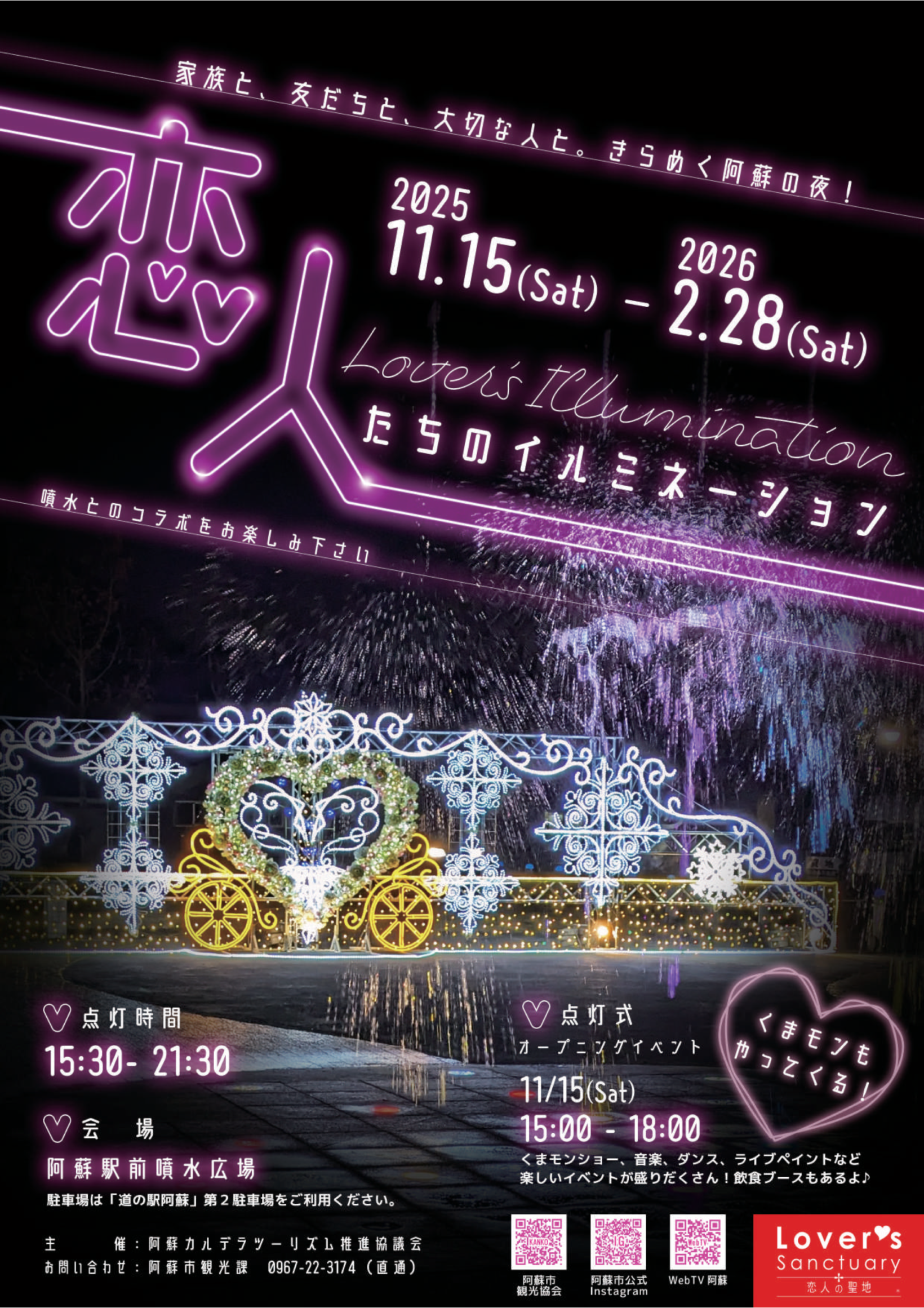11月15日の点灯式にはくまもんも登場してダンスや音楽ショーが予定されています。飲食ブースも出店予定とのことです!