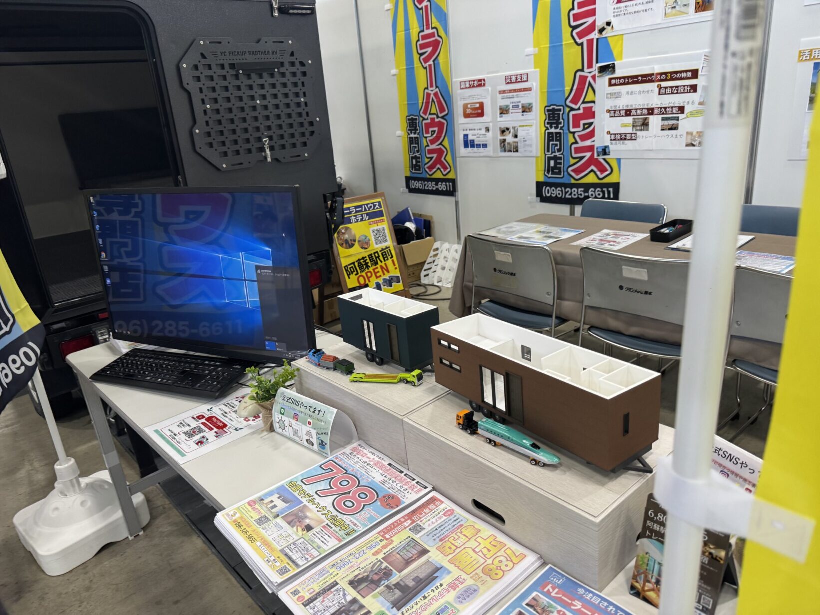 トレーラーハウスの展示もしたいところでしたがサイズオーバーでした...